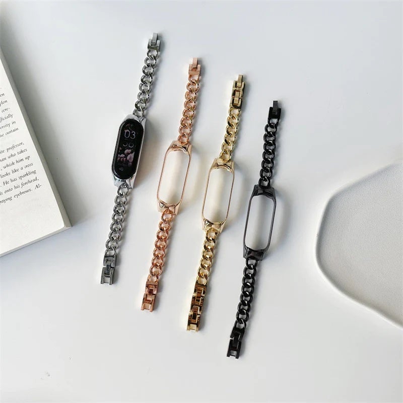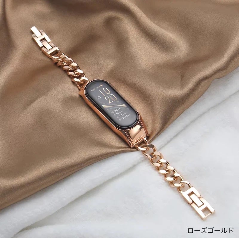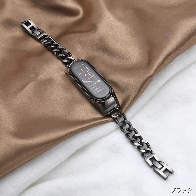 手軽さが魅力のフレーム一体型シャオミスマートウォッチ用バンドです。シンプルなチェーンは使う人を選びません。金属の光沢を生かしたきれいめのデザインはオフィスシーンにもぴったりです。