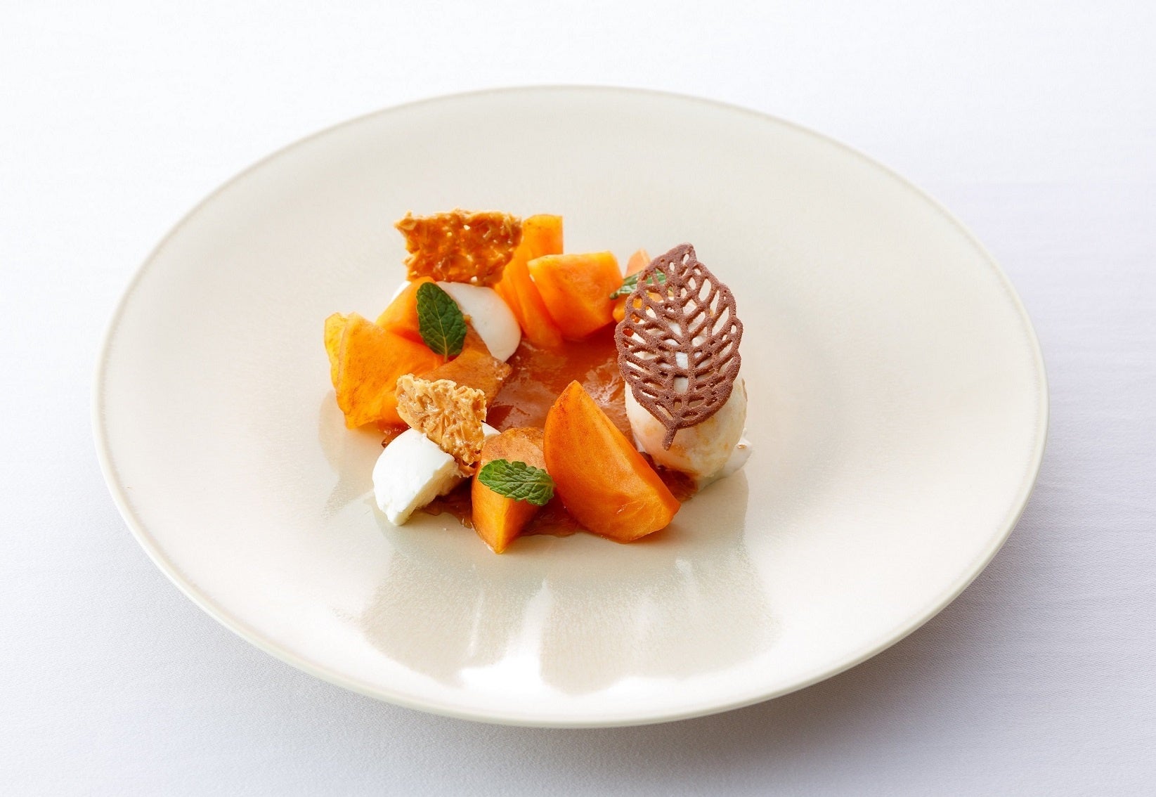 【ひらまつレストラン】甘柿の王様「富有柿」を使った今しか味わえないデザートが登場 ~ 福岡・天神「リストランテKubotsu」の11月限定“至高の柿スイーツ”~