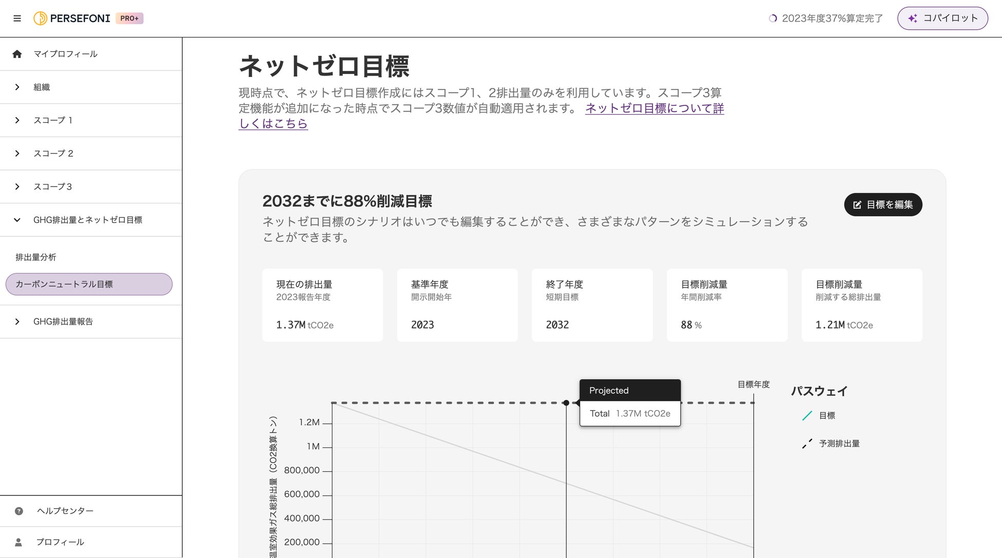 パーセフォニProは、企業がGHG排出量を管理し報告するためのクラウドツールです。無料で登録・利用が可能なサービスとなります。使いやすいインターフェースと算定・分析機能を兼ね備え、企業はGHG排出量を算定・管理することができ、削減目標を達成するための道筋も明確になります。また、サプライチェーンや投融資先全体のGHG排出量の算定とデータ収集機能も搭載しています。