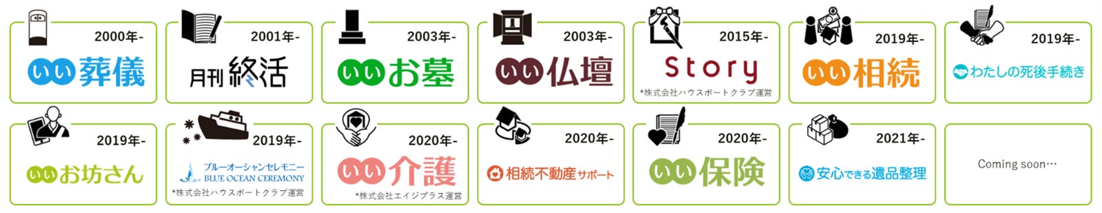 当社は人々が悔いのない人生を送るお手伝いをするため、終活・供養専門企業として「いい介護」、「いい葬儀」、「いいお墓」、「いい相続」などのサービスを運営し、お客様センターやポータルサイトを通じた相談受付や情報提供を行うことで、終活ワンストップサービスの実現を目指しています。