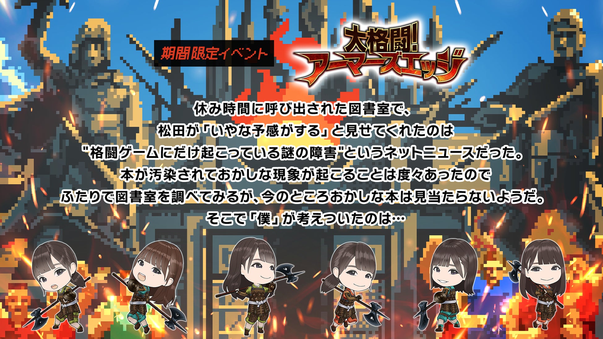 株式会社ソニー・ミュージックソリューションズ(本社:東京都港区、代表取締役:志田忠彦、渋谷学)は、スマートフォンゲームアプリ 『日向坂46とふしぎな図書室』 にて、期間限定イベント「大格闘!アーマーズエッジ」を3月31日(木)から開催いたします。
