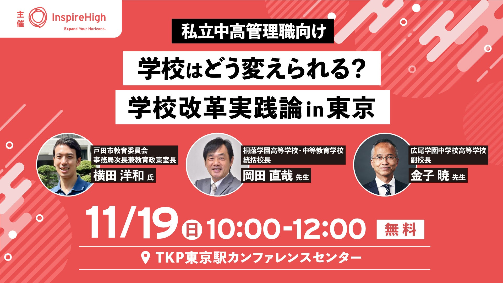 「学校はどう変えられる?学校改革実践論in東京」私立中高管理職向け対面セミナーを11月19日(日)に東京で開催
