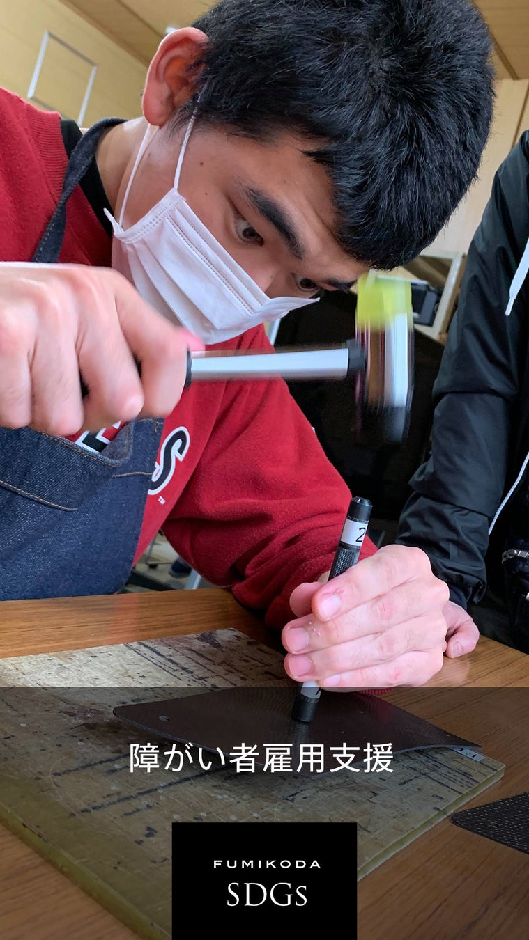 知的障がい者が産まれる確率は、2~3%と言われています。誰もが自立して活躍できる社会を実現するために、障がい者の就労を支援して少しでも多くの雇用を増やす仕組みづくりが求められています。FUMIKODAでは、障がい者支援施設の皆様にご協力いただき、アップサイクル生地を使ったものづくりに取り組んでいます。