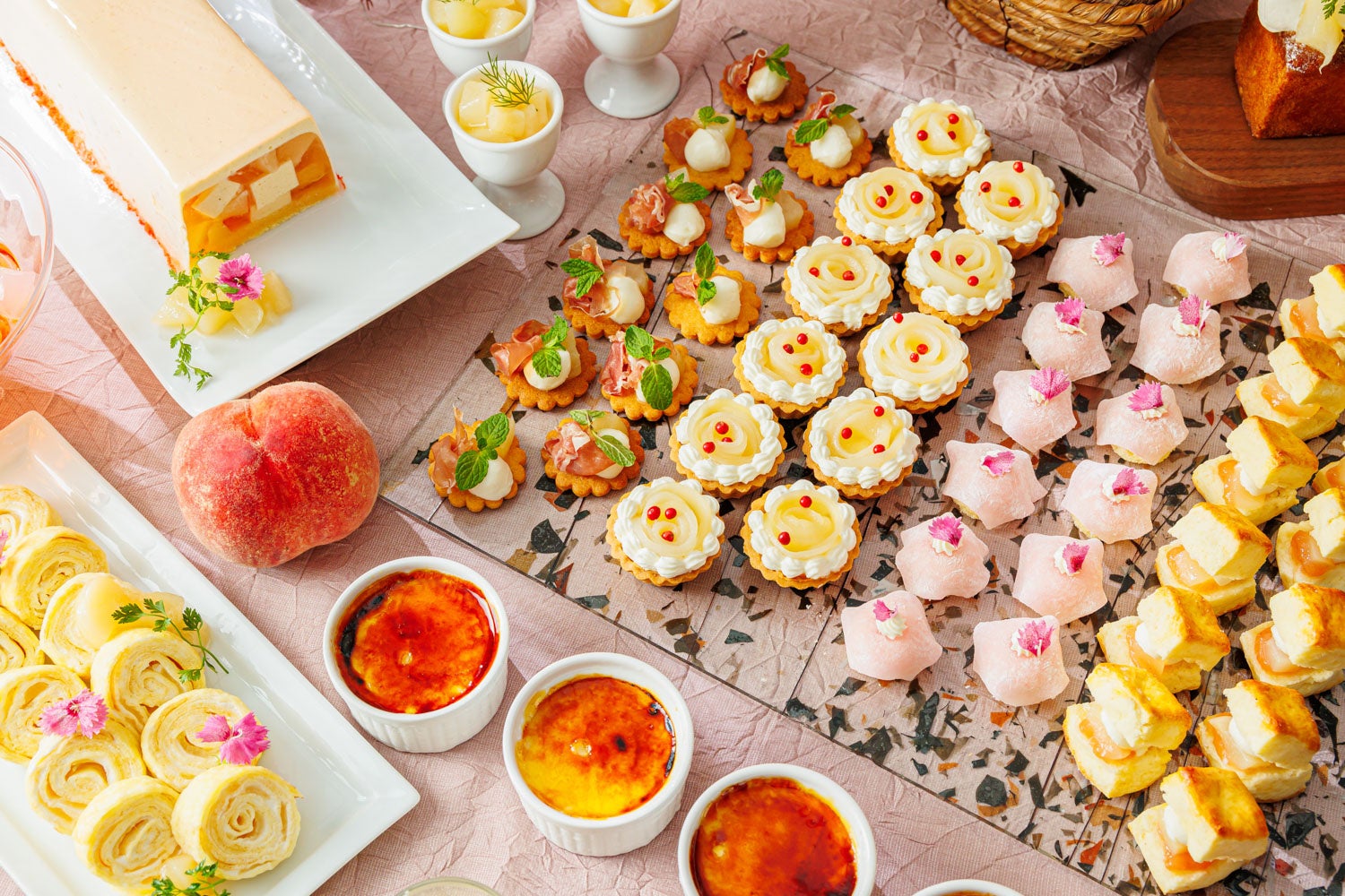 夏のナイトデザート後半はみずみずしい桃が主役。「桃とライチのムース」や「クレープロール」、「桃もち」など、桃の芳醇な香り漂う多彩な桃スイーツと夏にうれしいスパイス&ハーブが効いたフードメニューをご用意しました。スペシャルスイーツは韓国で生まれ、ニューヨークで人気を呼んでいる話題のスイーツ「たい焼きソフトクリーム」です。桃の果肉がたっぷり入ったソースやトッピングで、お祭り気分を楽しんでください。