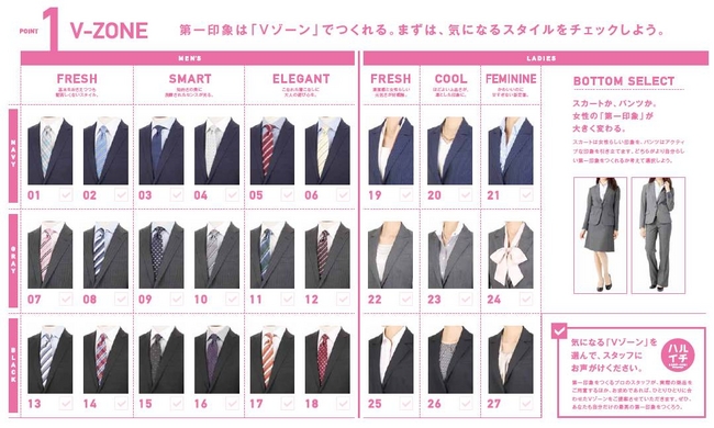 POINT1 V-ZONE…第一印象は「Vゾーン」でつくれる。「Vゾーン」の印象を様々なスタイルに合わせてチェック。
