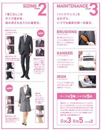 そこで、2014年2月21日(金)から開始する『ハルイチキャンペーン~春は第一印象~』では、「第一印象をつくる」ために必要な、Vゾーンのコーディネートや着こなしのサイズ感、スーツのメンテナンス方法などがチェックできる「パンフレット」をご用意しました。