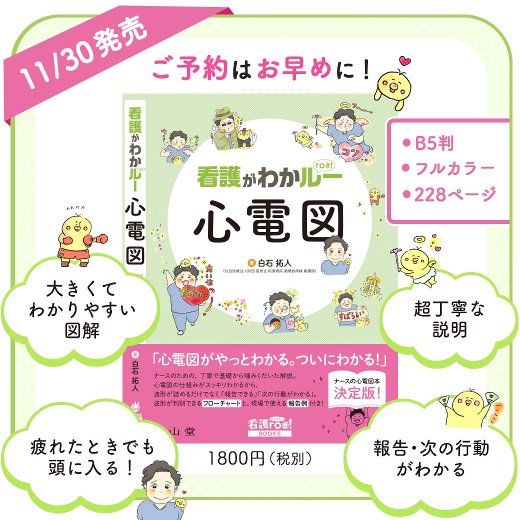 心電図がわからないという看護師や看護学生の、ニガテ克服のための強い味方『看護がわかルー心電図』は、本日(2022年11月30日)より、Amazonや楽天ブックス、全国の書店で発売開始となります。