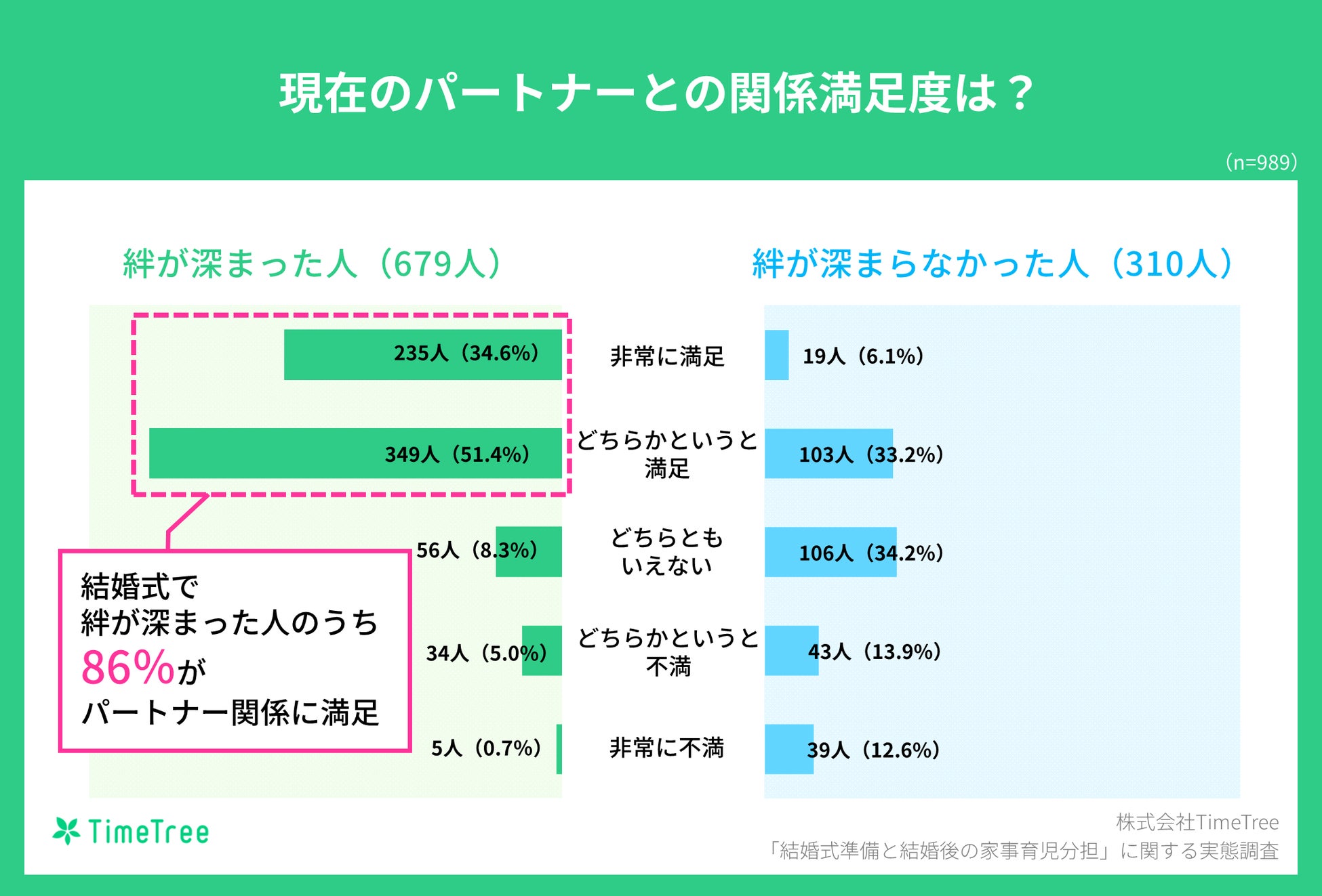 - 結婚式で「パートナーとの絆が深まった」人は、現在のパートナーとの関係も良好!