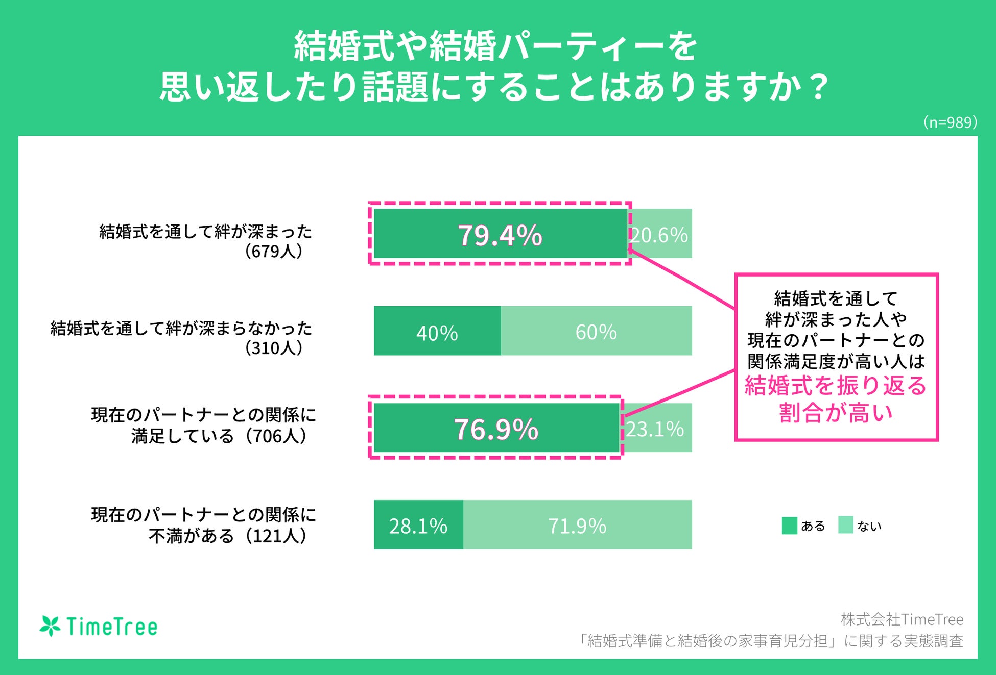 カレンダーシェアアプリ「TimeTree」(タイムツリー)を運営する株式会社TimeTree(本社:東京都新宿区、代表取締役社長:深川 泰斗)は、結婚式や結婚パーティーを行った経験のある全国20~40代男女989名を対象に「結婚式準備と結婚後の家事育児分担」に関する実態調査を実施しました。