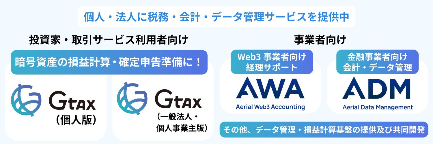 【デジタルアセット事業者の「会計・データ管理」は「Aerial」シリーズ】