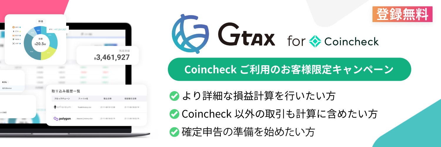 ■「Coincheck」をご利用のお客様限定!「Gtax for Coincheck」キャンペーン