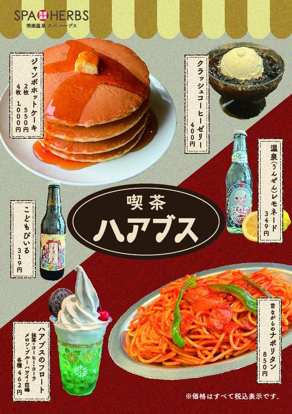 【懐かしい&おいしい】埼⽟最⼤級のスパリゾート「美楽温泉 SPA-HERBS」が期間限定でレトロ喫茶「喫茶ハアブス」をオープン!