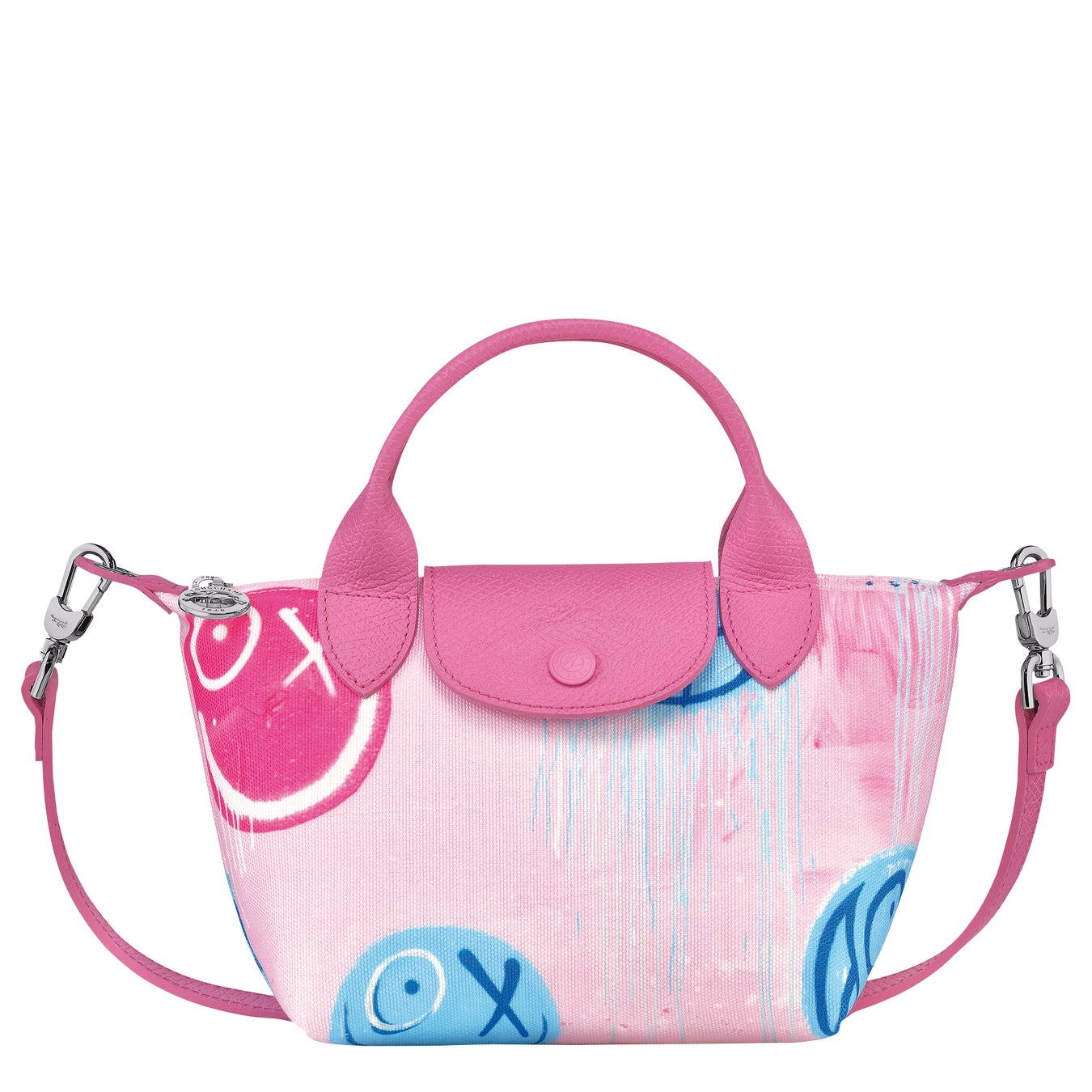 ユニセックス仕様の「ロンシャン & アンドレ」はさまざまなサイズ、デザイン、マテリアルで登場いたします。まずアンドレはポップなピンクとブルー、グラフィカルなブラック、そしてメゾンを象徴する鮮やかなグリーンに染まったリサイクルナイロン100%の「ル プリアージュ®」をわずか数筆で大胆にデザインし、ショルダーバッグLとトラベルバッグ、ハンドル付きポーチには“Mr. A”、そしてトップハンドルバッグXSにはまつ毛をしばたかせてキスを贈る“Mrs. A”を描きました。
