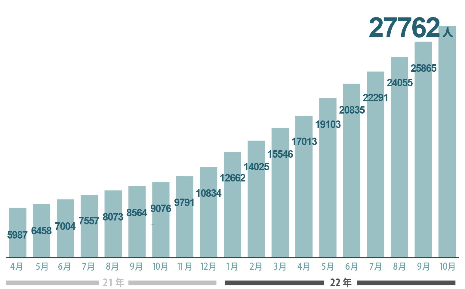 結果、組織の構成も大きく変化し、現在リクシィではサポーターズが全体の約7割を占めています。昨年同時期と比べて社員は12→11名、育休中の社員を除くと10名と約2割減にも関わらず、半期売上は約3倍になりました。