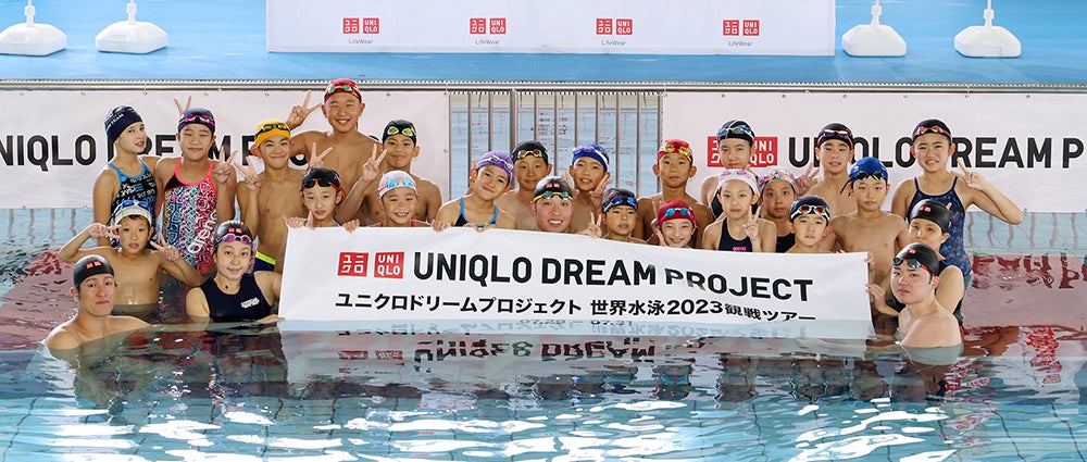 ユニクロは7月29日(土)から31日(月)までの3日間、当社がナショナルスポンサーを務める「世界水泳選手権2023福岡大会」で、次世代の水泳アスリートを対象にした「ユニクロドリームプロジェクト 世界水泳2023観戦ツアー」を開催しました。未来の水泳アスリートの夢を応援することを目的に、公募で選ばれた8~12歳の小学生21名が参加。競泳金メダリストであり、世界の舞台で活躍した萩野公介さんをユニクロドリームキャプテンに迎え、世界大会の観戦や会場ツアー、水泳教室を実施しました。