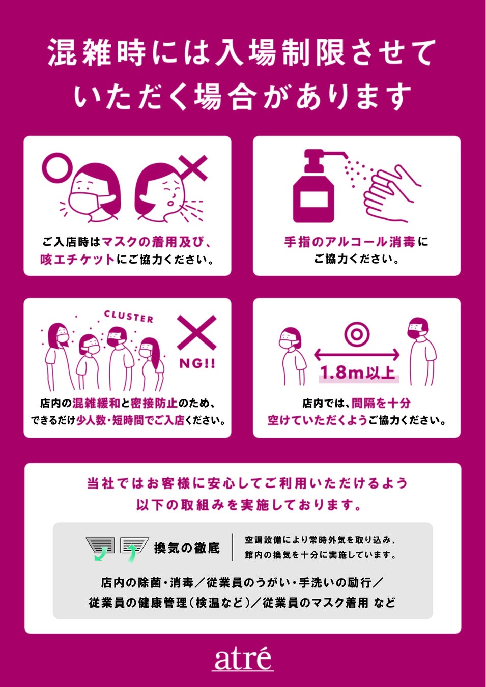 - アトレの感染防止対策・ソーシャルディスタンスご協力のお願い