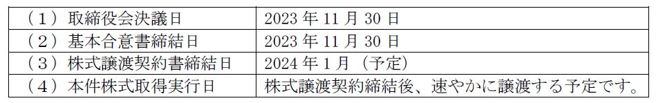 当社は、2023年11月30日開催の取締役会において、株式会社ケーシップの株式を取得し同社を子会社化するため、同社株主と株式の譲渡に関する基本合意書を締結することを決議いたしましたので、下記のとおりお知らせいたします。