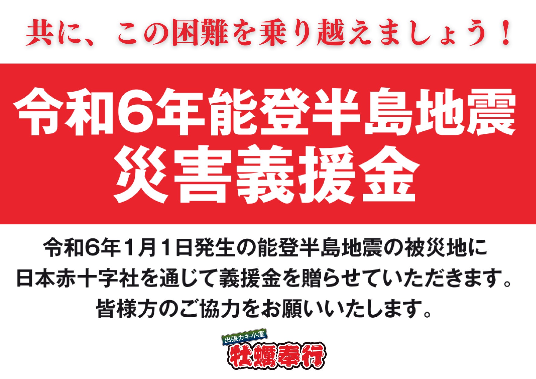 また現在は「共に、この困難を乗り越えましょう!」をスローガンに、店内にて能登半島地震支援義援金の募集も行っている。
