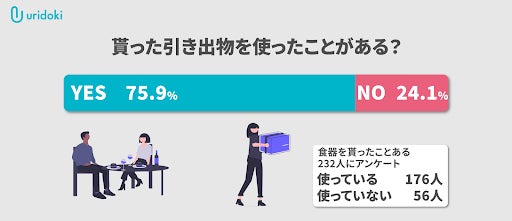 食器をもらったことがある方の中で、4人中3人は使った経験があると回答しています。