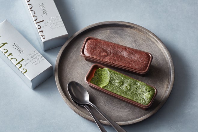 上質なチョコレートをたっぷり使用し、濃厚でなめらかに仕上げた贅沢な「ガトーショコラ」。「チョコレート」と「抹茶」の2種類をご用意しました。「治一郎」ならではのしっとりとした口どけと、重厚なショコラの香味をご堪能ください。