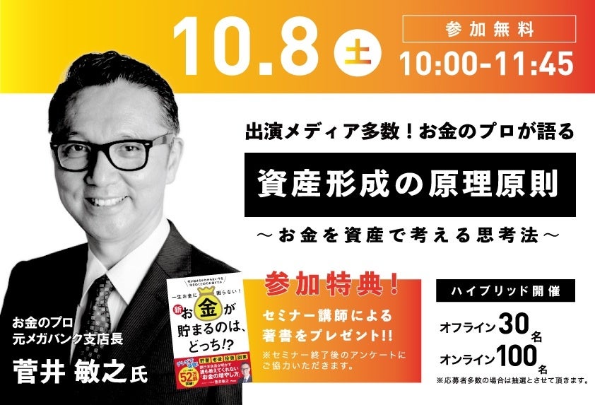 【10月8日(土)10:00〜】菅井 敏之氏 登壇!オン・オフ選べる 無料セミナー