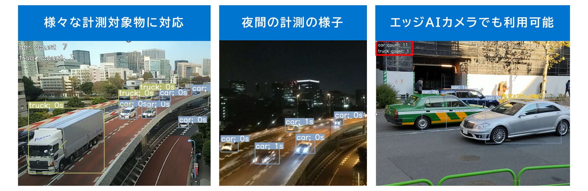 監視カメラ映像から、車両や人の交通量の計測をAIで自動化します。