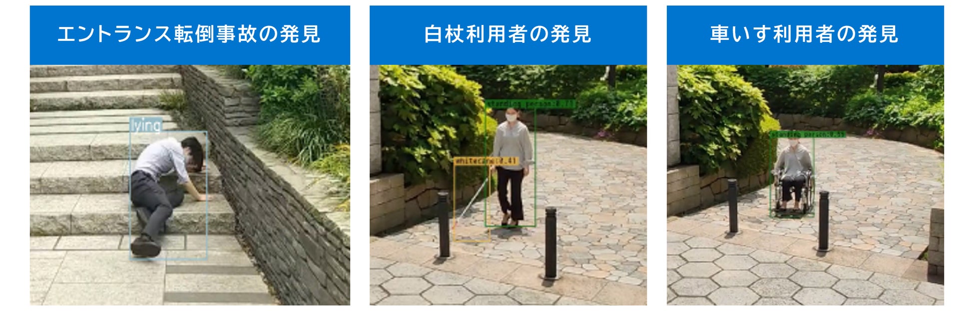 AIが監視カメラの画像を解析、エントランス転倒事故や要介護者の発見をお手伝いします。