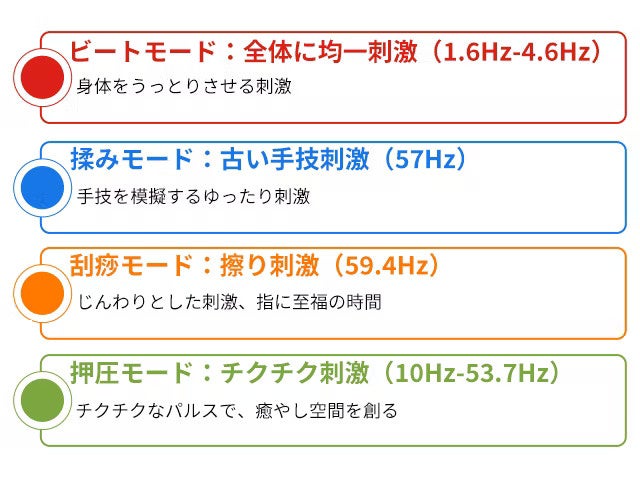 本製品は電気パルスで指先に刺激を与えます。自分の気分に合わせてモードをお選びください。