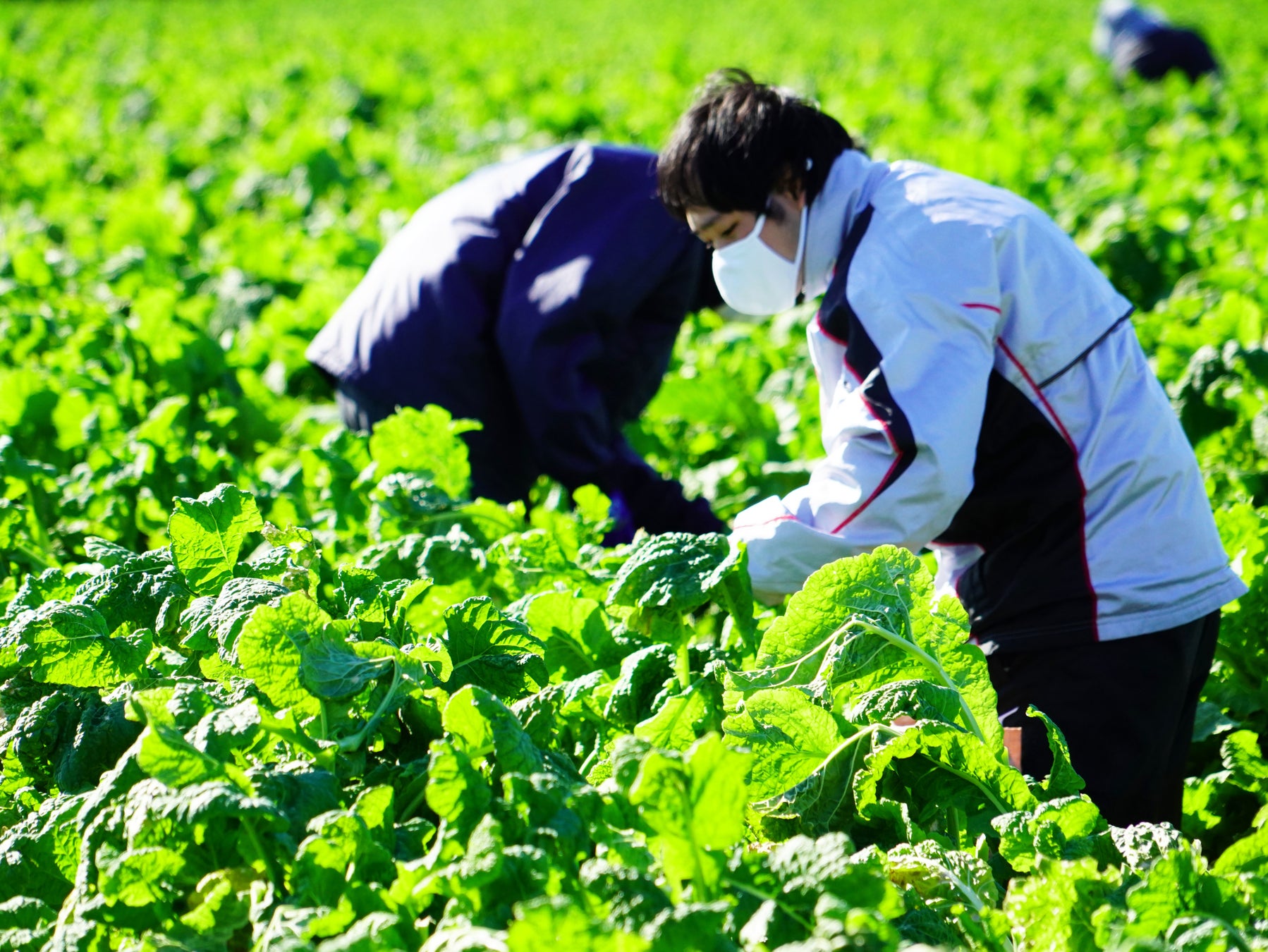 ピア宮敷様では、サッカーコート2面分に相当する農地で食用菜花を栽培し、収穫を行っています。しかし、繁忙期の1月から3月には人手不足となり、収穫作業が追い付かない課題がありました。