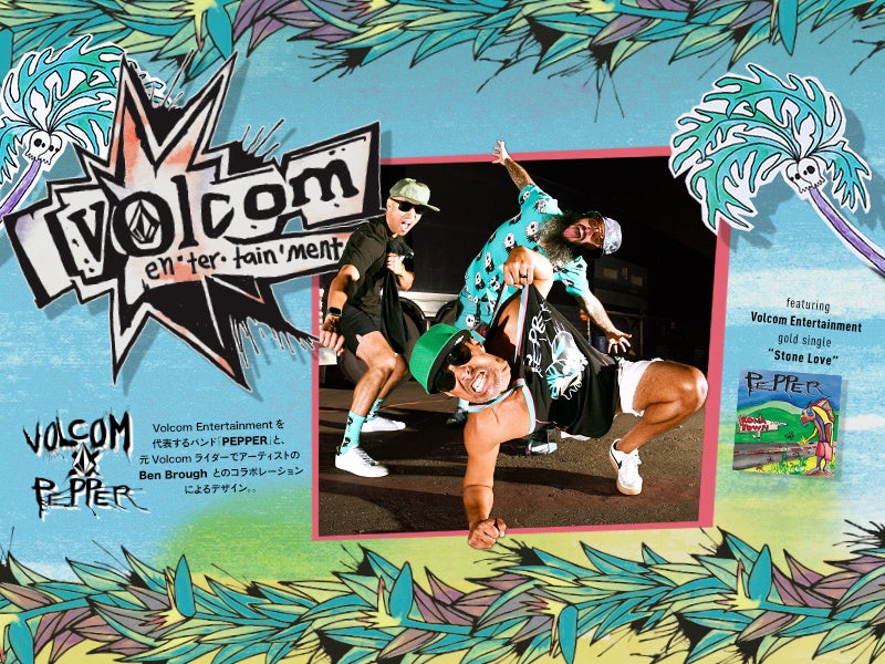 1999年にVolcom Entertainmentと契約したレゲエロックバンド「Pepper」とコラボレーションしたコレクションを発表。今回のコレクションは、VOLCOMの元プロサーファーでアーティストでもあるBen Broughをデザイナーに起用し、グラフィックシャツ、Tシャツ、パーカー、ショーツ、ソックスなどで構成される限定アイテムをローンチしました。