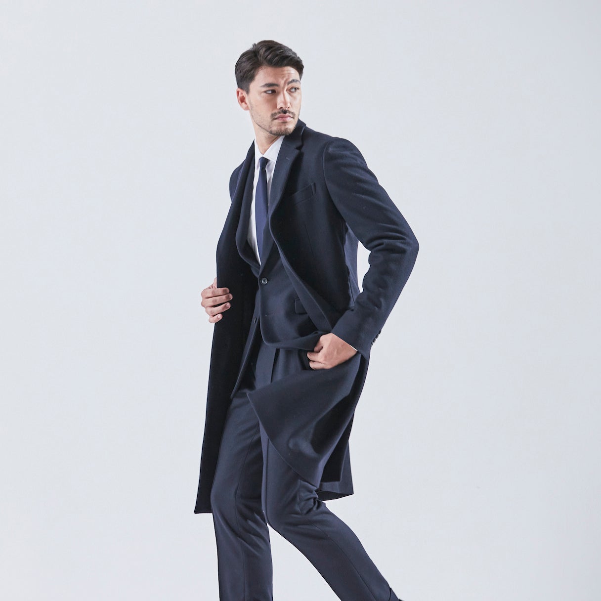 シングルチェスターコートは、着用時に美しいハリが出るように、胸の内側に「胸増し芯」を取り入れたり、袖先は本切羽(飾りボタンではなく、ボタンの開閉が可能な袖先)を用いたりと、随所に本格仕様ディティールを採用。