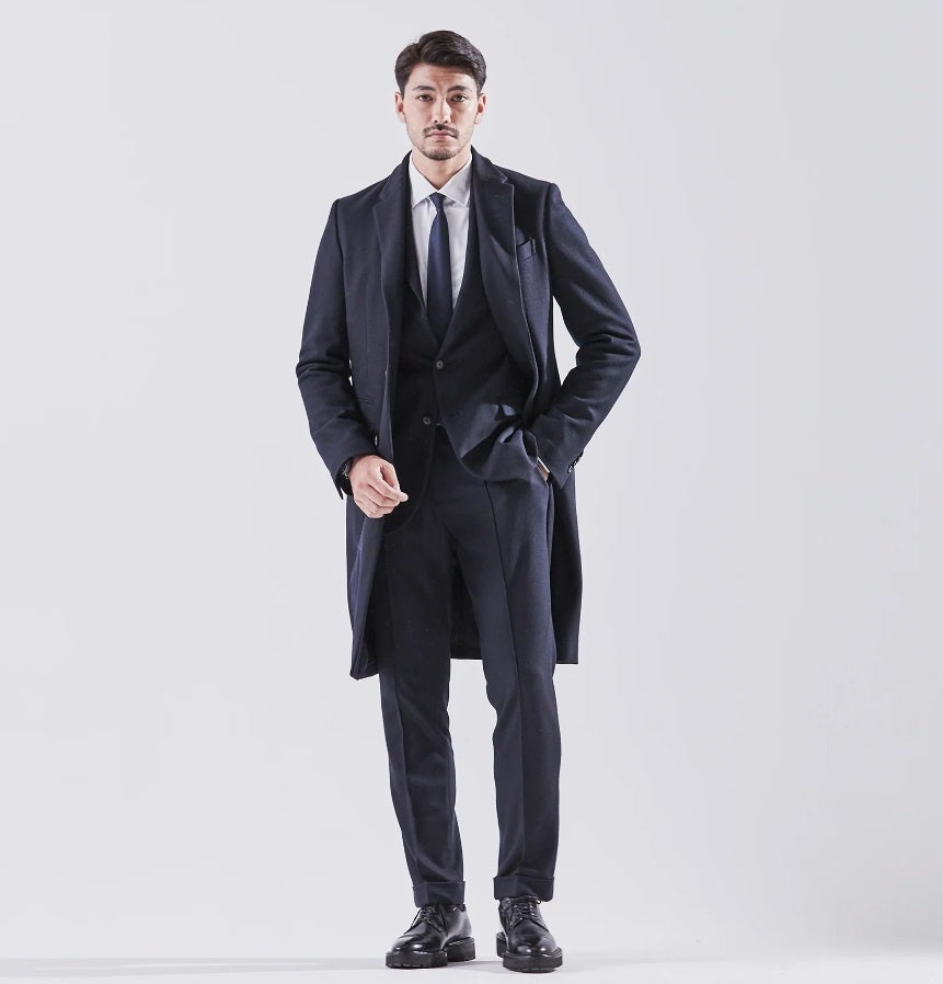 大阪髙島屋ポップアップストアの注目アイテムは「Optima 16.5 Merino Jersey」を採用したPコートやチェスターコートなどのアウターアイテム。