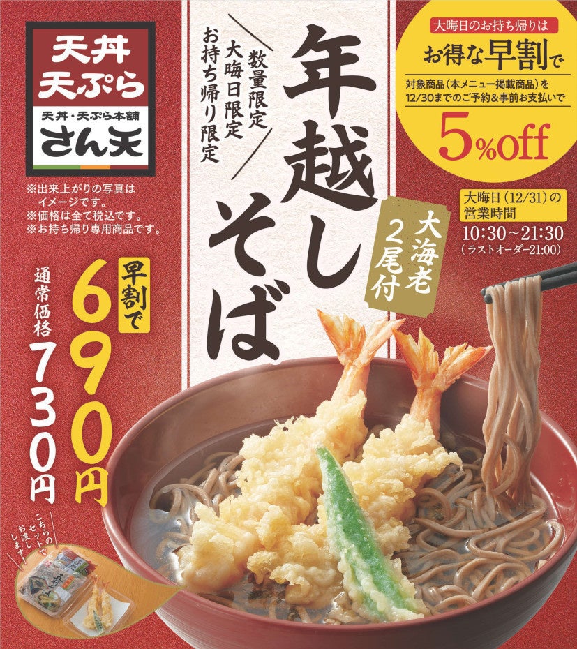 【天丼・天ぷら本舗 さん天】11/1~大晦日「年越しそば」の予約を開始