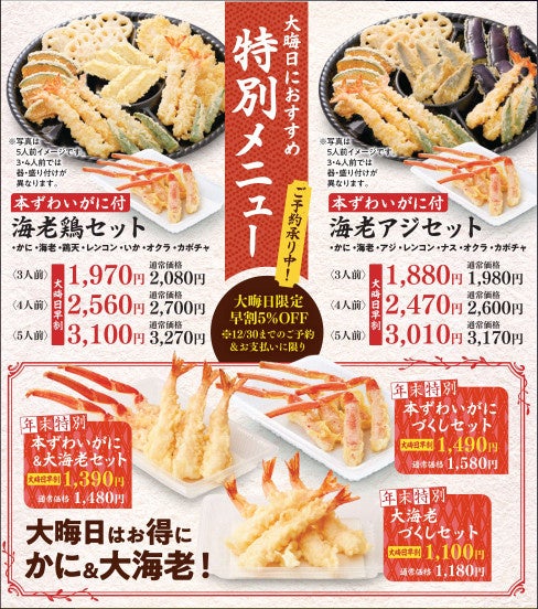 ~ズワイガニや大海老を使用した豪華な年末年始限定商品の予約を開始します~