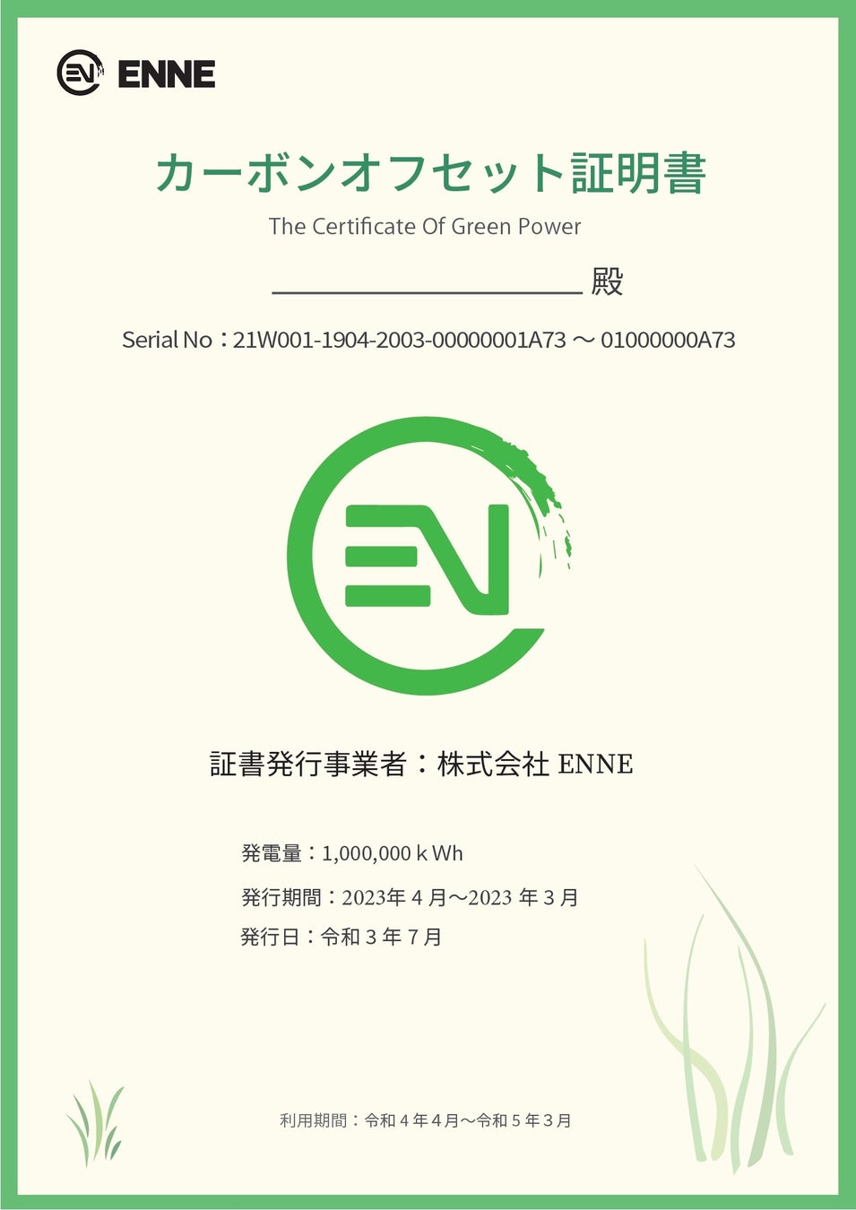 年間の走行距離に応じて特別な計算式を用いてお客様が車や電車から当機に乗り換えたことにより削減したCO2量を推定し、証書化を行います。証書はご自身のSNSでアップして環境への貢献をアピールすることができるほか、当社で使えるポイントに交換できるシステムを構築予定です。