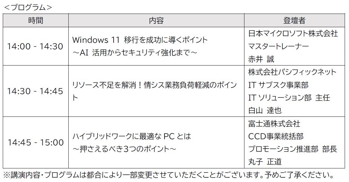 富士通との共催によるWEB セミナー、「AI 搭載のWindows 11 移行が生産性向上のカギ!」を開催いたします