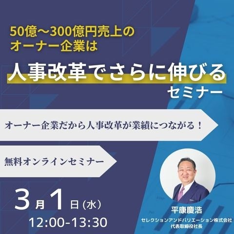 【2023年03月01日 (水)開催】「50億~300億円売上のオーナー企業は人事改革でさらに伸びる」セミナー