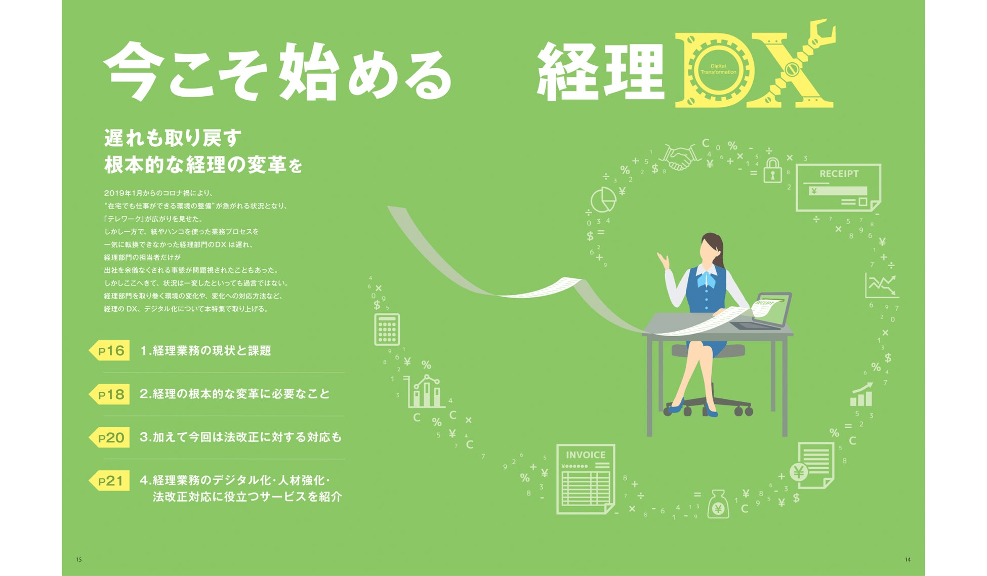 経理DXをテーマに、巻頭では弥生株式会社と国税庁に独占取材。他にも企業における根本的な経理業務の変革を進めるソリューションを多数解説しています。