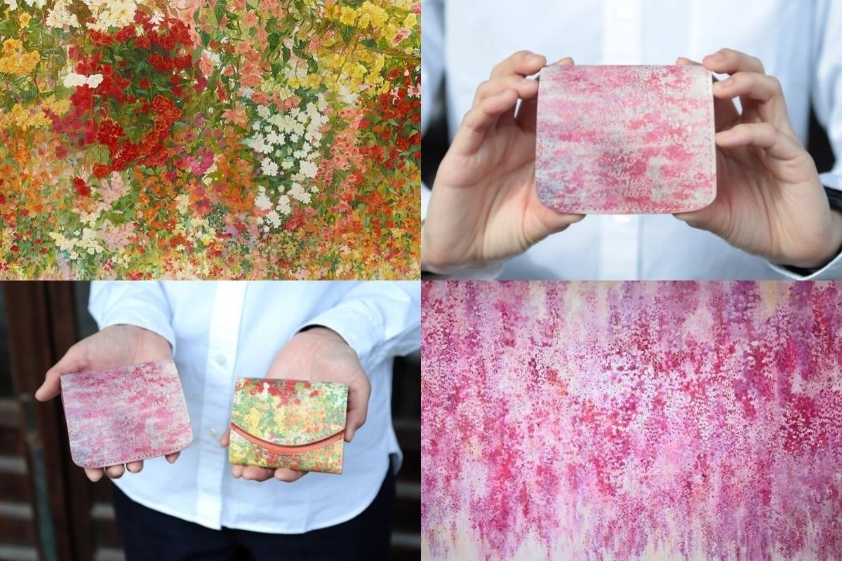 伝統的な日本画材を用いて描かれた花々がお財布に。
