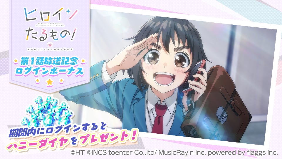 本日3月31日(木)より、アニメ「ヒロインたるもの!〜嫌われヒロインと内緒のお仕事〜」のTVアニメ化を記念した「アニメ『ヒロインたるもの!』放送直前ログインボーナス」を開催いたします。期間中、ハニプレにログインするだけで「ハニーダイヤ×100個」を受け取ることができますので、ぜひこの機会にご参加ください。