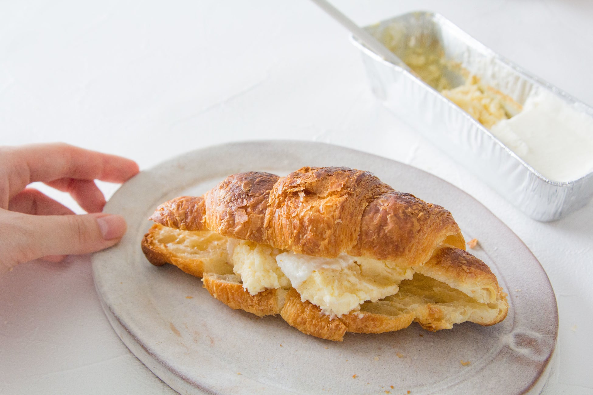 クロワッサンにとろ生ケーキを挟む「とろ生クロワッサンサンド」は、toroa開発者五十嵐ゆかりがイチ押しするアレンジのひとつです。一口でおうちにいながらカフェのような極上の味わいを体験できます。