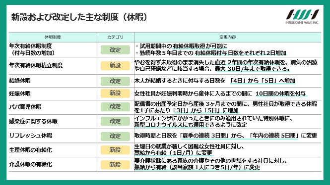 インテリジェント ウェイブ、社員の「働きやすさ」と「自律的なキャリア形成」を支援する休暇制度を拡充