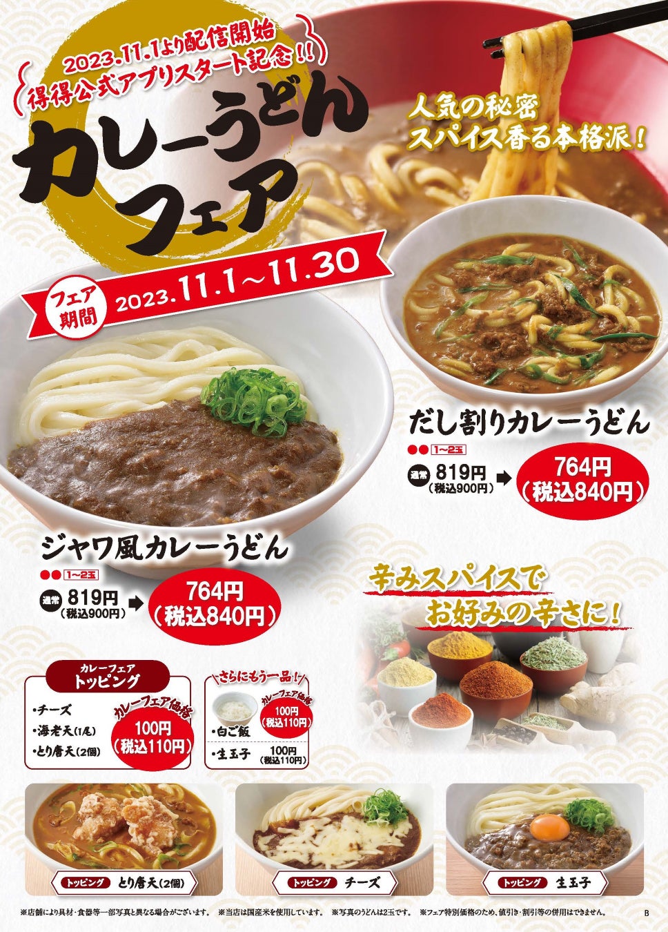 得得公式アプリ開始記念 「カレーうどんフェア」を開催