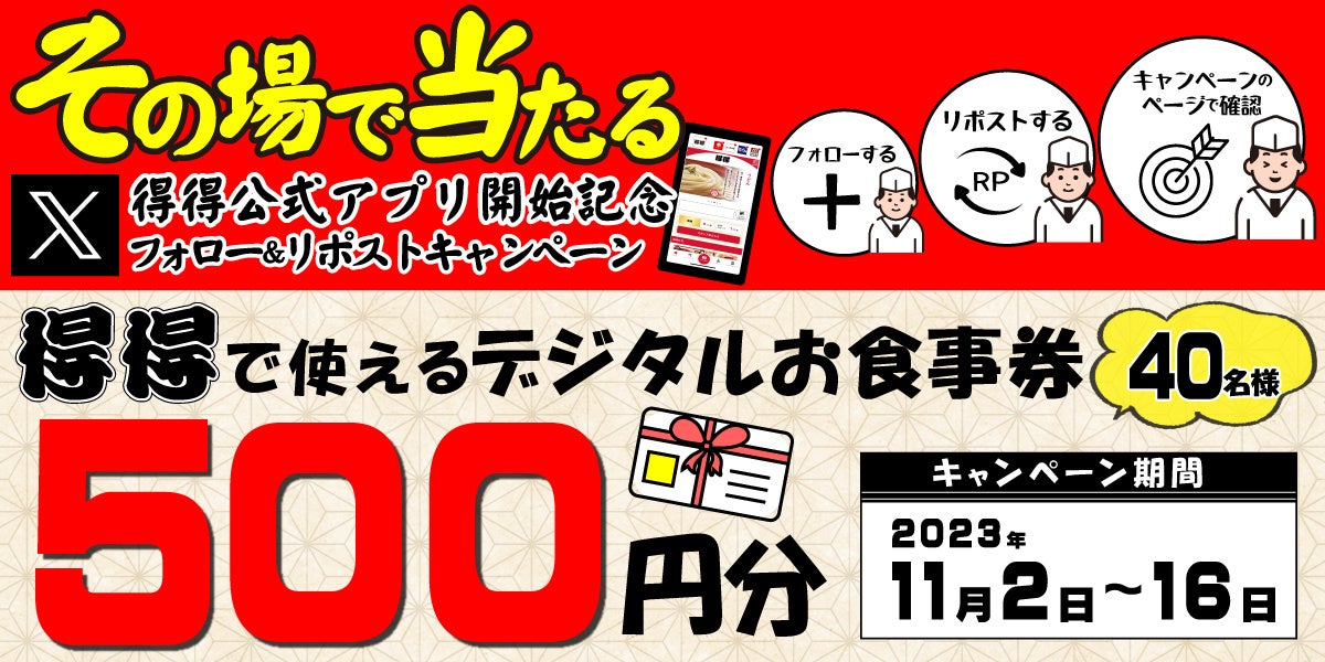 得得公式アプリ開始記念 「得得公式Xフォロー&リポストキャンペーン」を開催