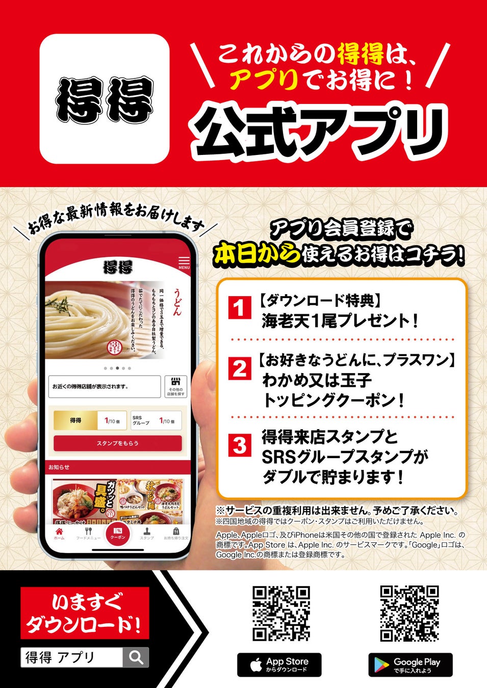 得得公式アプリ開始記念として、カレーうどんフェア、得得公式Xフォロー&リポストキャンペーン開催!