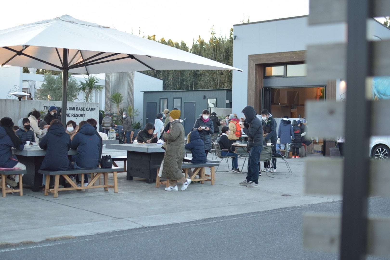 本イベントは、「一年の計は元旦にあり」という古来の言い伝えから、施設をはじめ南房総の発展と平和、自然の豊かさを初日の出に祈る催しであり、通常はご利用者だけの入場のところ、イベント中は施設を一般開放して地域の皆様やご宿泊のお客様、遠方のお客様などオープン当初から毎年開催して毎回100名以上のお客様が訪れる大変人気なイベントとなります。