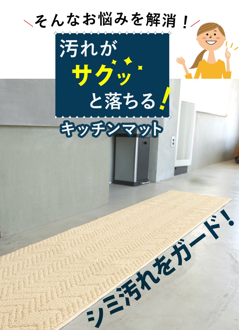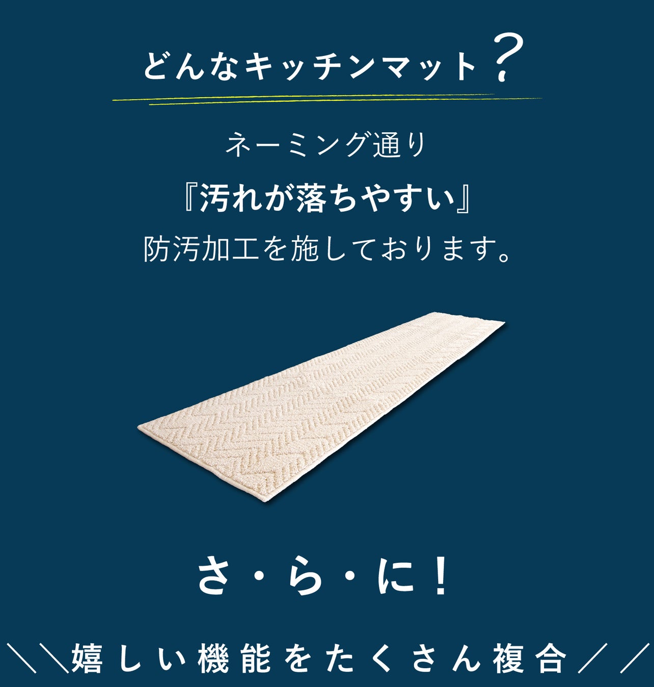 防汚加工+ワイド巾でキッチンの清潔を保つ汚れがサクッと落ちるマット!