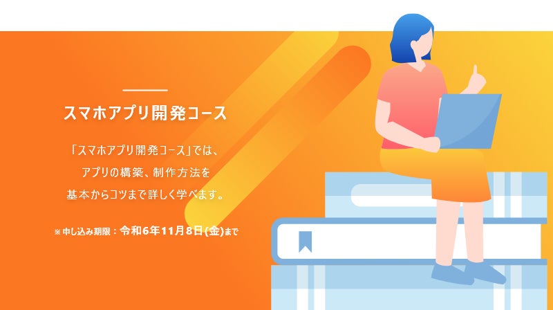 アプリの構築、制作方法を基本からコツまで詳しく学べます。受講料は無料です。