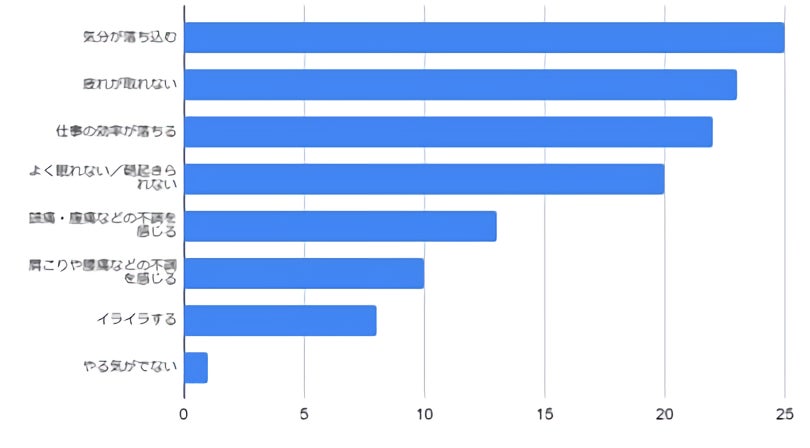 これまでに五月病の不調を感じたことがある人は「気分が落ち込む」「疲れが取れない」「仕事の効率が落ちる」などと回答しています。
