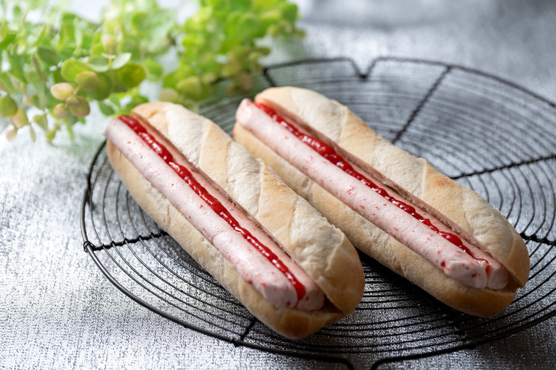 夏にもおいしい真っ赤な完熟いちごを挟みました。